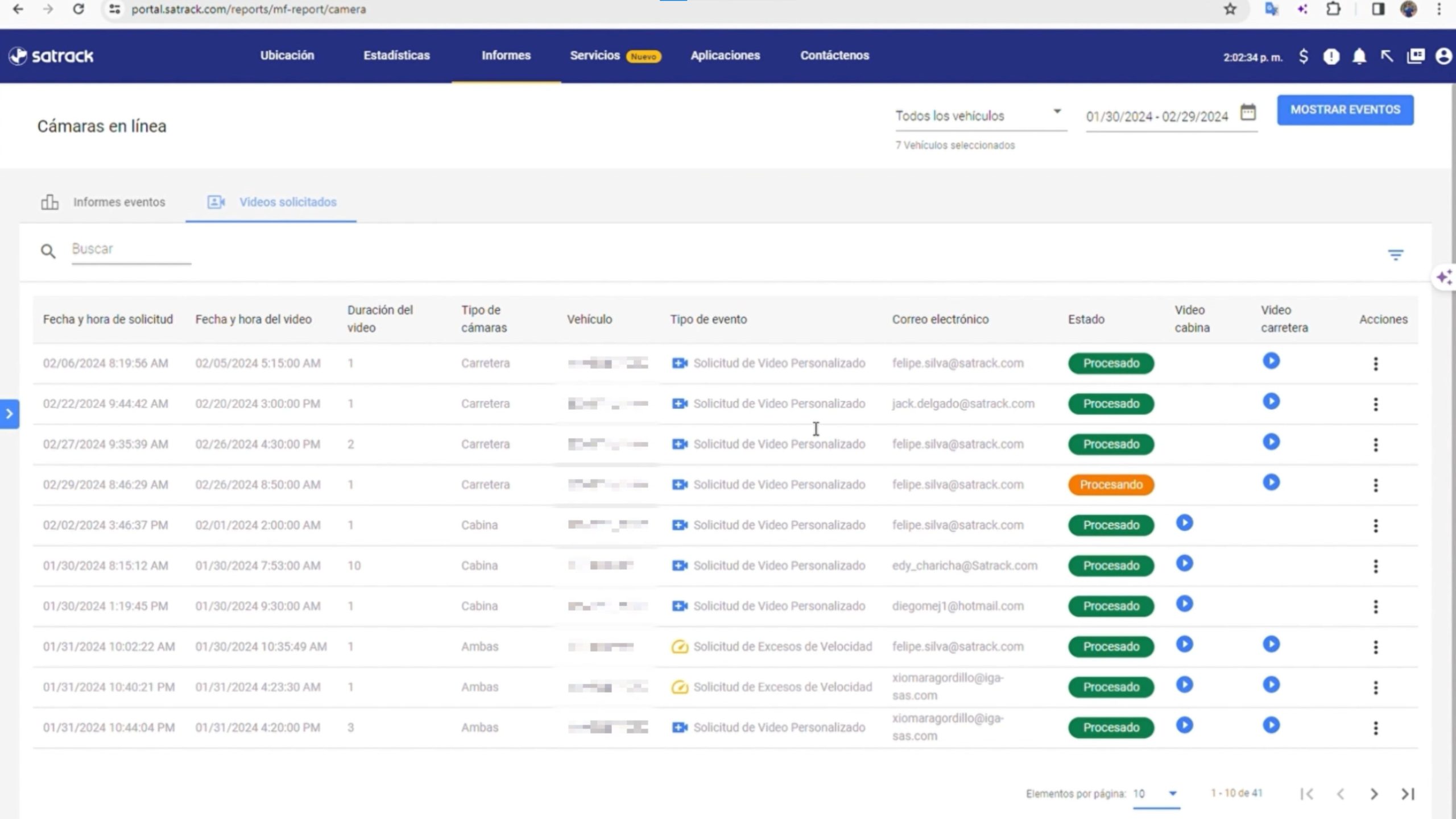 Cómo ver y entender los informes de cámaras en la plataforma Satrack